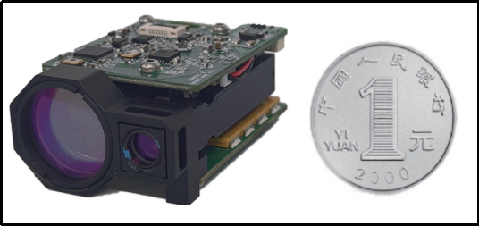 Figure 1 LSP-LRS-0310 F-04 laser rangefinder product diagram and one-yuan coin size comparison